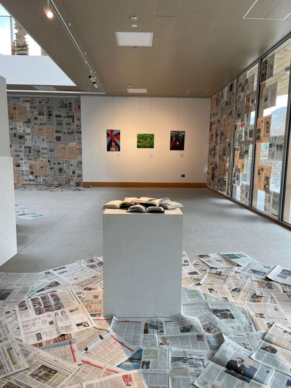 »La mostra nasc a la fin de n percors de filosofia col professor Gabriele Dellagiacoma e laboratorie de pitura col professor Claus Soraperra te chi che aon let e analisà l roman '1984’ de George Orwell publicà del 1949 – à dit la studentes. Endèna n confront coletif con la clasc e i dozenc aon podù descorer e svilupèr vèlch una de noscia reflescions sul sens del liber e sun chisc temes: l’emportanza de la scritura, la vera, l amor, i prolet, la libertà de pensier, l totalitarism, la morala, la fisizità di corpes, la coscienza e publicazion de se enstesc, l’emarginazion sozièla, l bipensier e la verità.