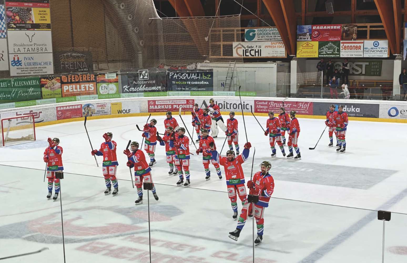 Cater iedesc à l HC Gherdëina venciù l Campiunat talian. 45 ani do sënt i tifosi, y nia mé chëi, che chëst ann pudëssela inò garaté cun n titul. Chëst iede ne se tràtel nia de n »scudetto«, ma n juega per la vënta dla Alps Hockey League. Feter doimile persones à n merdi sëira sustenì i jugadëures tl Pranives tl segondo juech dla fineles contra l Maran. L Gherdëina à fat l juech y venciù 6 a 3. Do la vënta de n sada passeda per 1 a 5 a Maran, sàla do doi juesc donca 2 a 0 per l Gherdëina. Śën possa i tifosi semië. Chi che vënc dant cater juesc ie campion dla Alps. L Gherdëina à de bona chertes. N juebia de chëst’ena saràll terzo juech, n sada ai 18 de auril l cuarto te Sëlva. Dai me, Gherdëina!