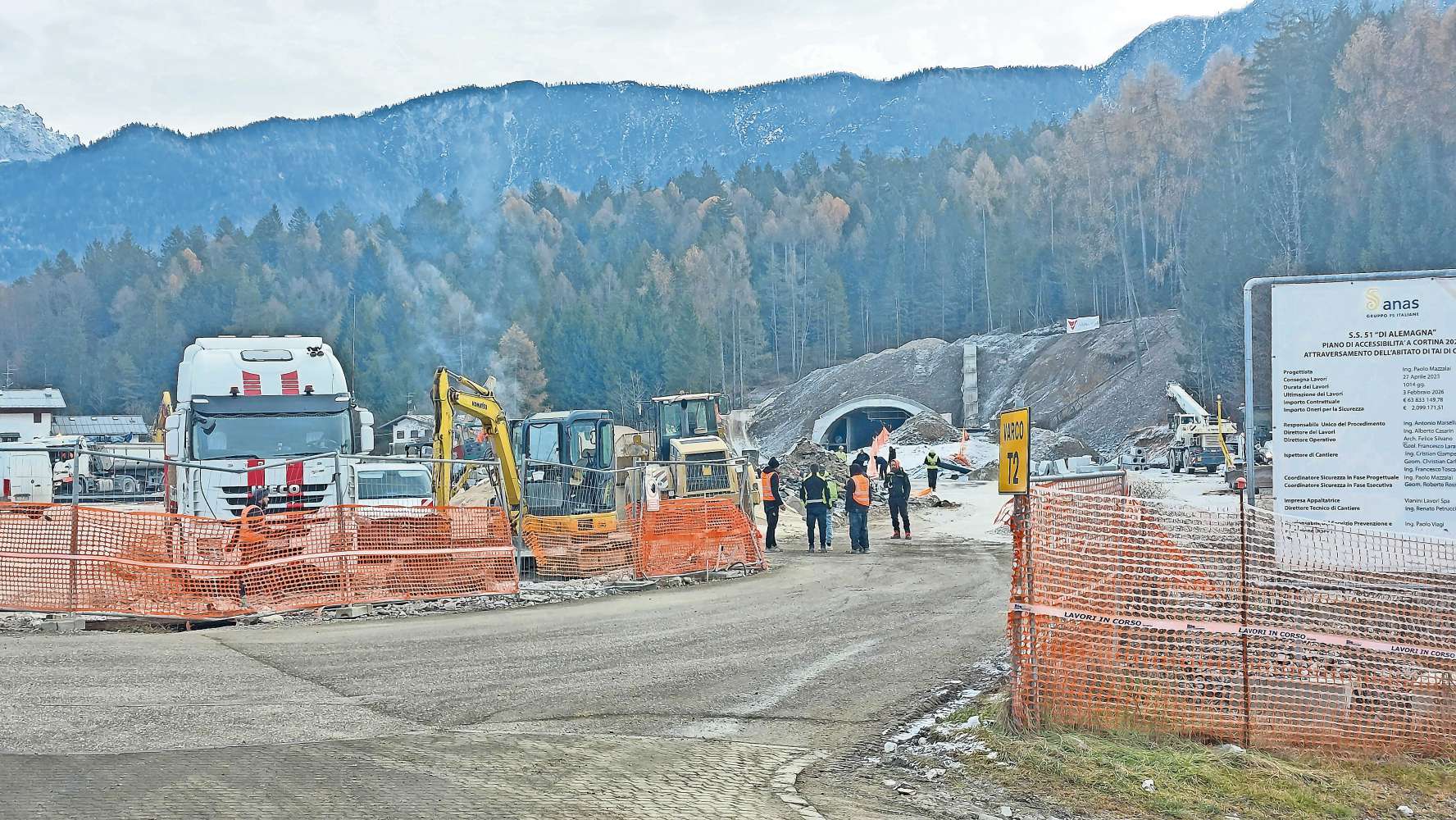 I cantiere sul stradon 51 de Alemagna da ruà in Anpezo