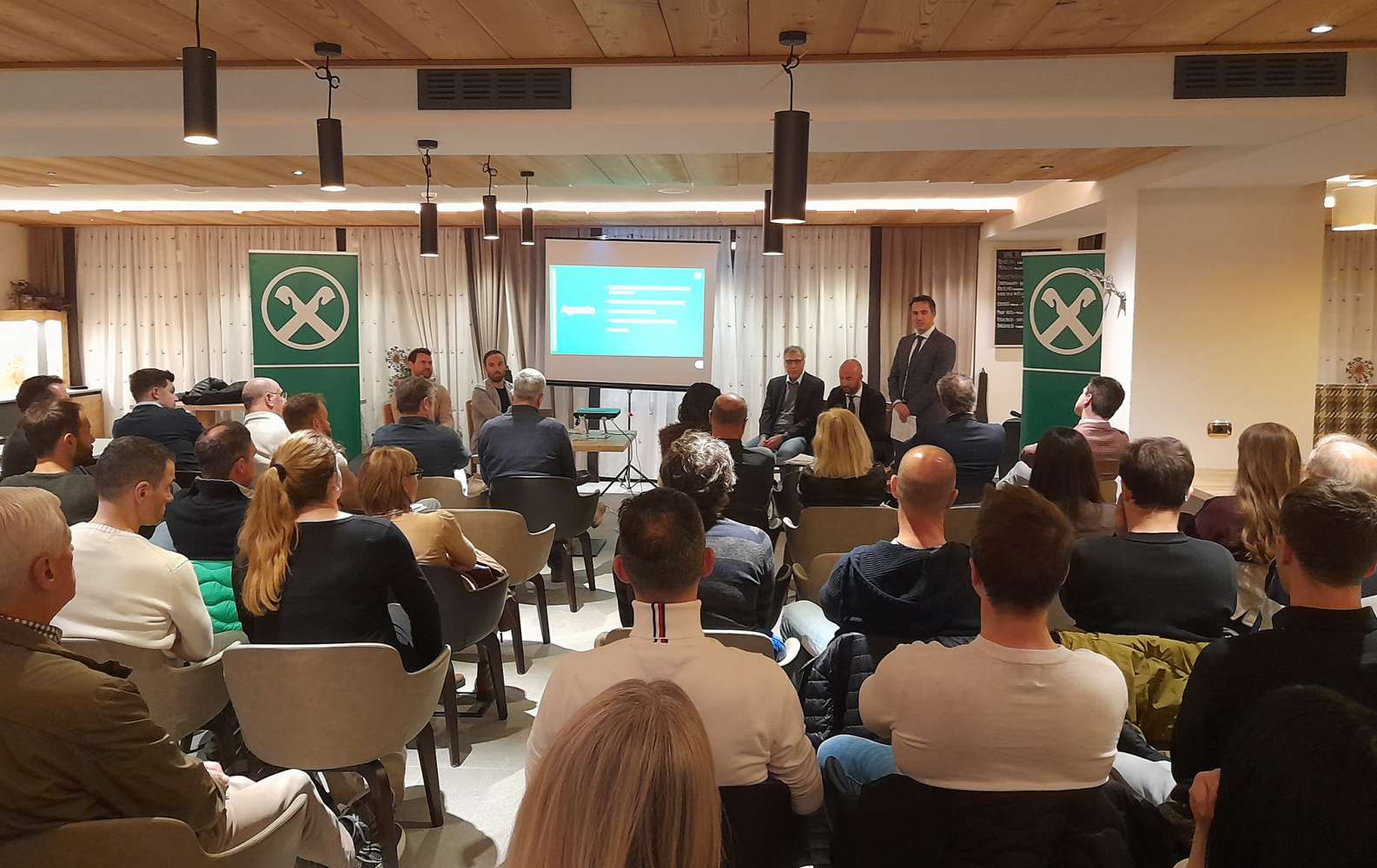 Dapò l responsabol de la filiala de Fascia, Patrick Detomas, ge à dat la parola ai relatores, i consulenc del Sudtirol Wolfgang Achammer e Klaus Breitenberger, che vidé da la domanes de Paul Harich i à tout dant desvalives temes de emportanza per n imprenditor che vel fèr investimenc per smaorèr la produtività de sie hotel, rejonan ence de strategies e de tendenzes.
