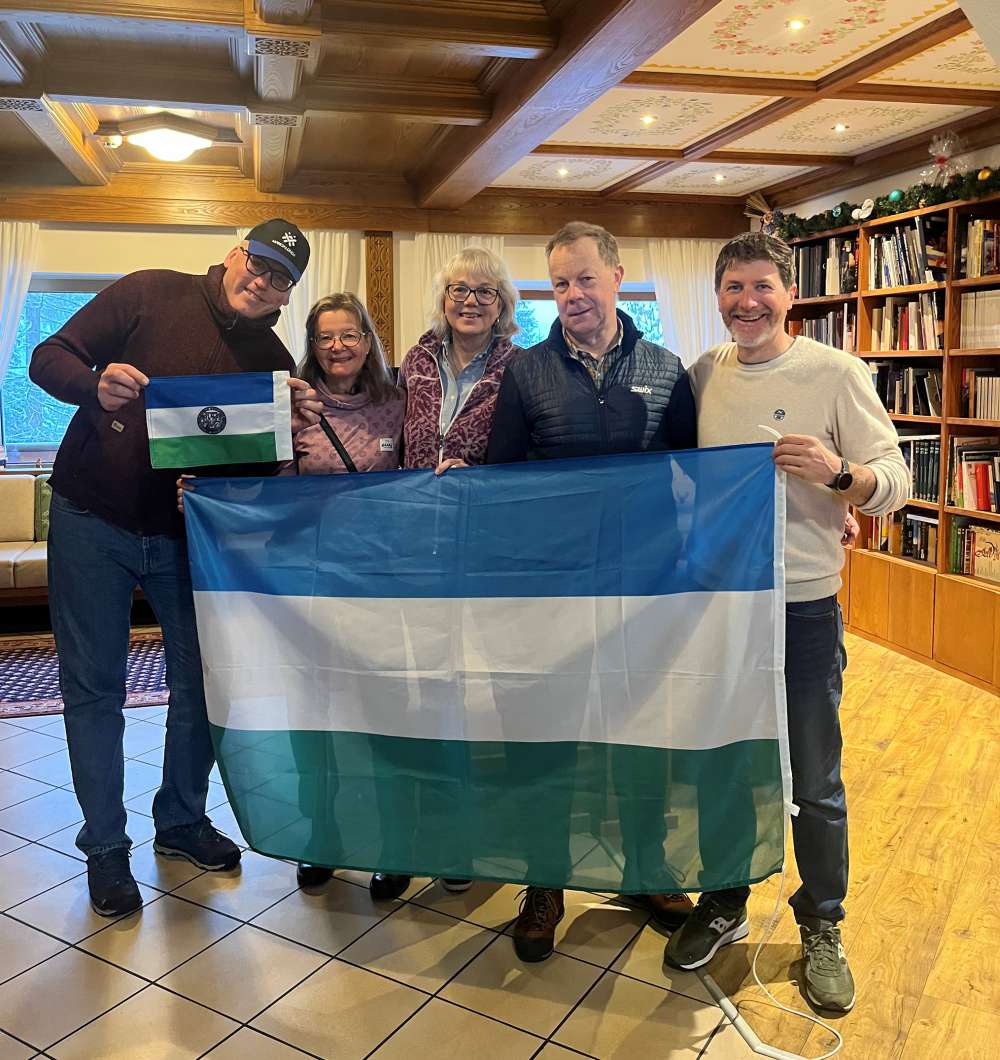 Aon vedù la bandiera ladina jà la pruma outa che sion vegnui percheche l’à i medemi colores de la bandiera del Jämtland. Mingol a l’outa aon tacà a descorir autra somees anter la doi regions.