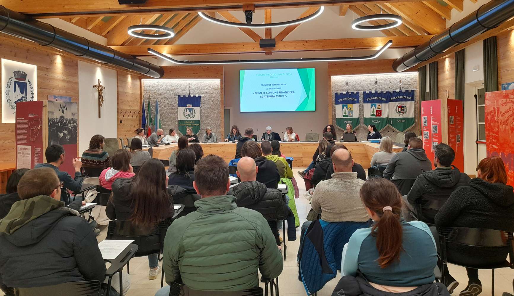 L é chesta la pruma neva che la assessores del Comun de Sèn Jan Mirella Florian e Lucia Dellagiacoma, ensema a la referentes del Comun Paola Martini e Cristina Deluca, che à dat duta la informazions che servia, ge à prejentà ai 25 de mèrz ai genitores sentadins del Comun, rué en gran numer e con na gran prejenza de pères, bon segn de coinvolgiment a partezipazion a la costions che revèrda i fies.