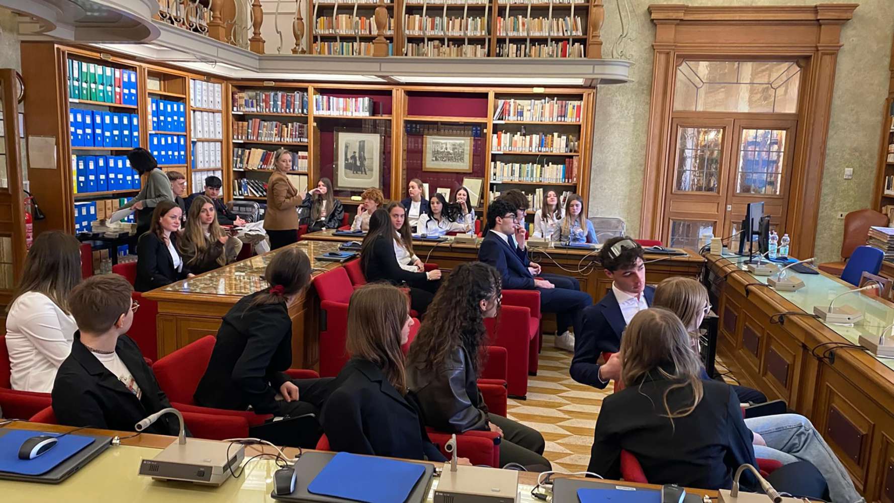 Dai 23 ai 25 de mèrz 36 studenc de la clasc seconda, terza e quarta del Liceo di lengac e quinta B del Liceo scientifich de la Scola Ladina de Fascia, ensema a la dozentes Silvia Murer, Mariagrazia Degasper e Lidia Rasom, é partii per Roma de gra al pest Montecitorio de la Cambra di Deputac. Chest recognosciment é stat vent col projet ‘No una de più’, declarà un di miores projec de zitadinanza ativa a livel nazionèl. Defat l MIM (Minister de l’Istruzion e del Merit) à recognosciù l gran empegn e l prezious contribut del projet e l ge à dat l met al grop de studenc fascegn de viver na ocajion emportanta de formazion proprio te anter la sales del Parlament, olache l à podù tor pèrt a na discuscion de n DL e simulèr n lurier parlamentar.