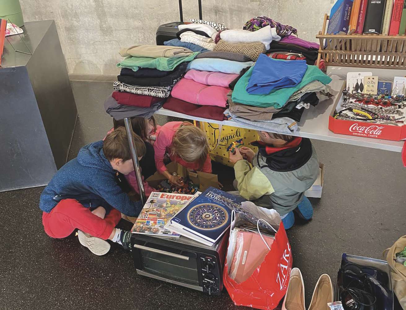 L fova da vënder oles, copes, guanc, ciauzei, libri, cd’s, tasces, antlaries, njins da cësa, decurazions y mo truep d’auter. Chi che à fat pea à paià na piculëza y stajova pona un o doi dis pra si stont a vënder si pec. »L ie l prim iede che on metù a jì vel’ da de tel, ma l ie drët garatà. L fova na bela amosfera, l tëmp ie passà scialdi aslune y chi che à vendù fova drët cuntënc de coche la ie jita«, à cuntà Rita Lovas, cunlauradëura dla lia Mostra d’Ert.