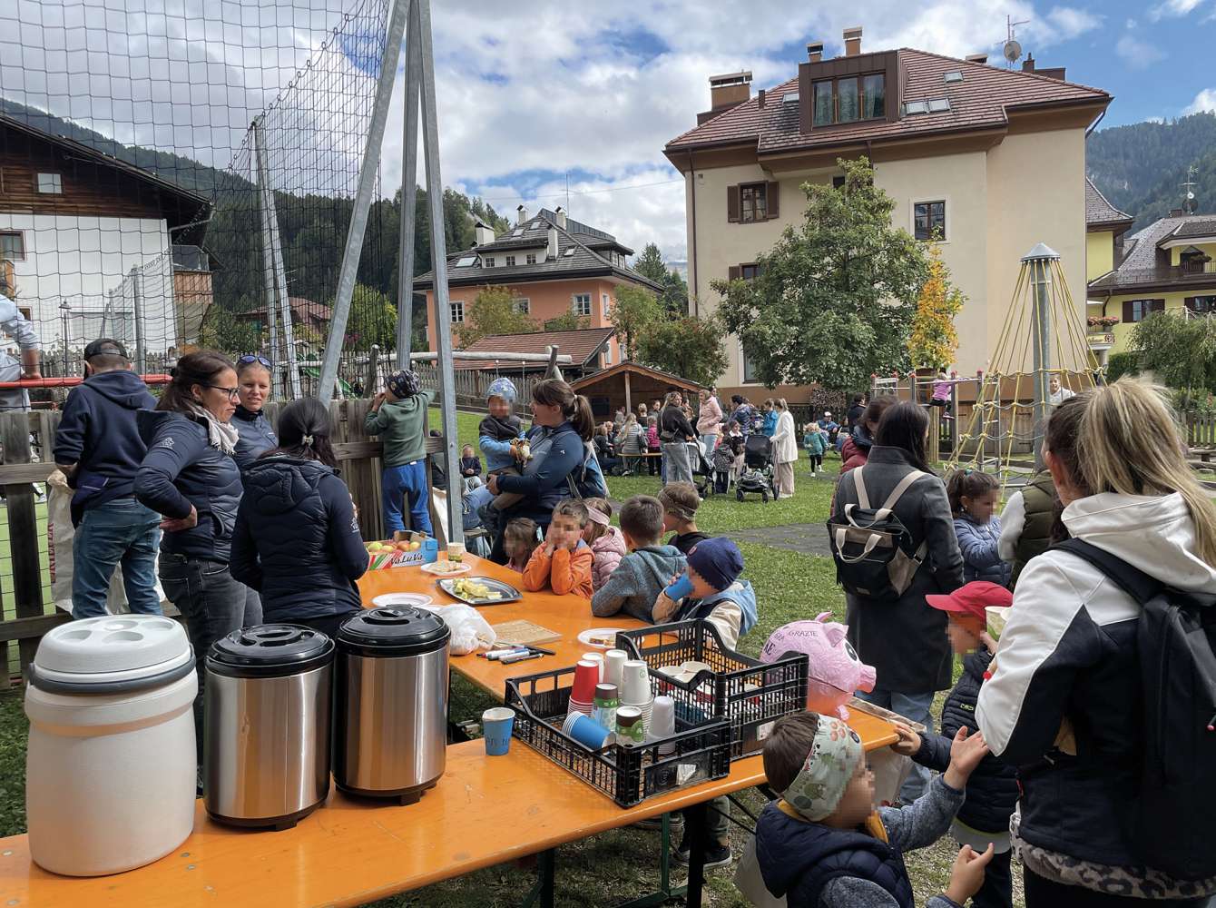 ... chëles ie mefun tan bones! Truepa families se à abinà n sada passeda tl pra dla scola elementera a Urtijëi, per la festa dla castanies, che la lia Vke Gherdëina mët a jì uni ann de setëmber