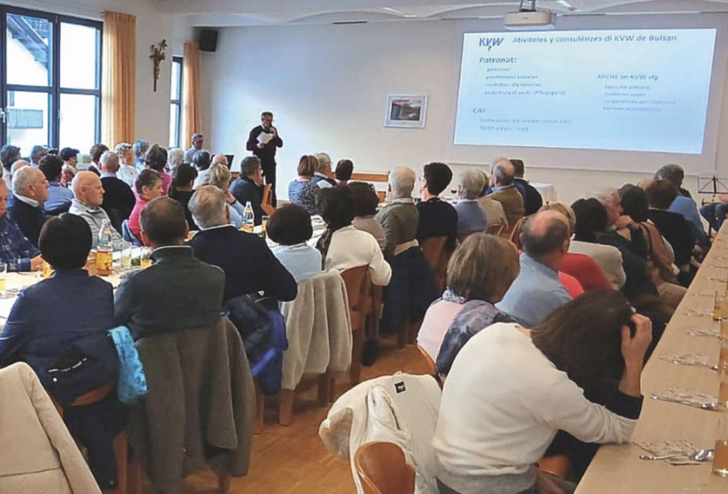 Tla pert ufiziela dla senteda à l presidënt Rudolf Mussner purtà dant la relazion dl atività dl ultim ann y la relazion de cassa. L ie stat n ann cun na gran atività cun scumenciadives mpue per duc, da cursc de cujiné y de balé, ancuntedes per cianté deberieda o sëires de nfurmazion de tematiches sun la sanità. L ie unì metù a jì n viac de cater dis a Praga y a Dresden, n viac de un n dì a n marcià da Nadel te Tirol y n pelegrinaje tl Schmirntal.