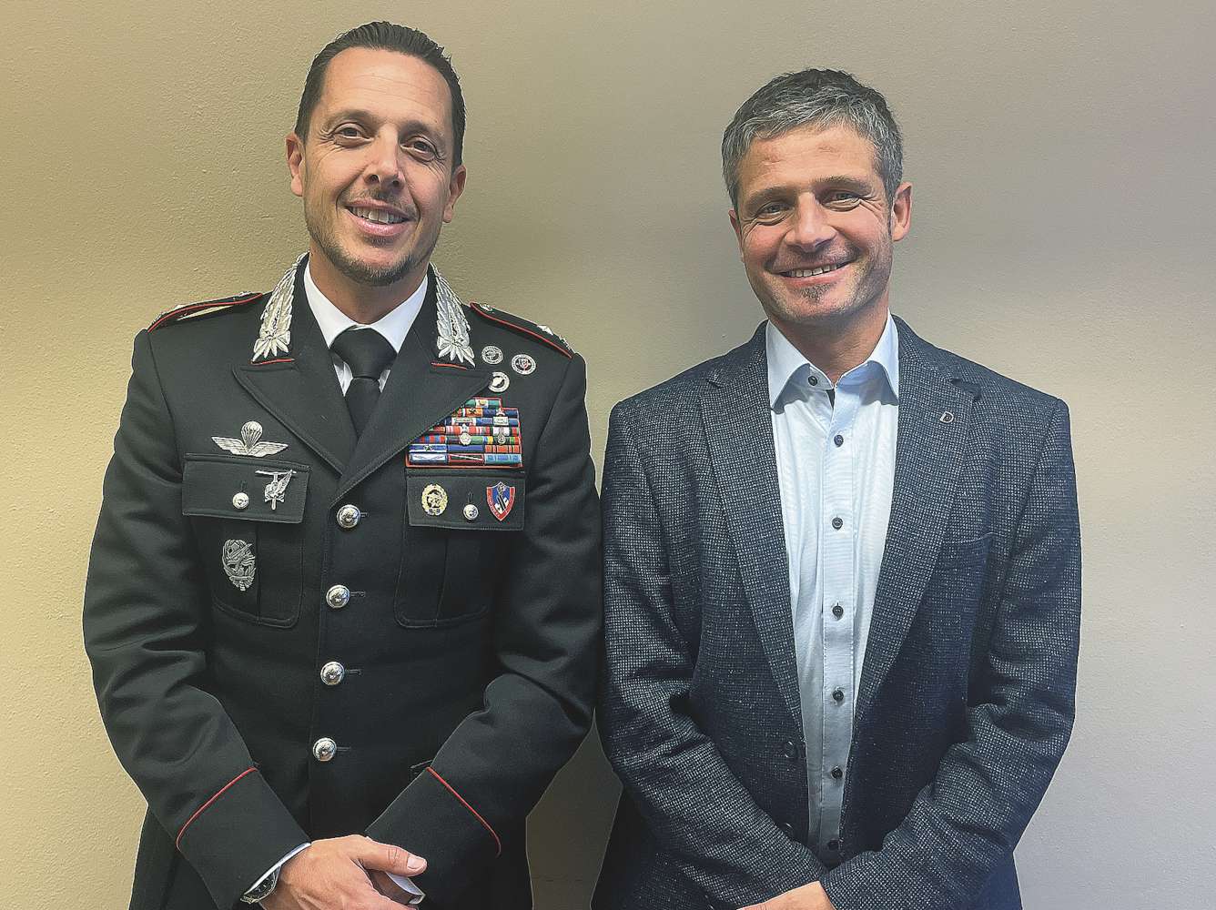 L Maior di Carabiniers dla Cumpanìa de Urtijëi, Marco Lanzi, y l diretëur dl Cunsorz di mplanc Gherdëina/Mont de Sëuc, Hannes Perathoner, ie ruvei te ufize per rujené dl sucors che i uemes dl’Erma fej ntan la sajon da d’inviern y dl’urganisazion dla segurëza de purtoi.