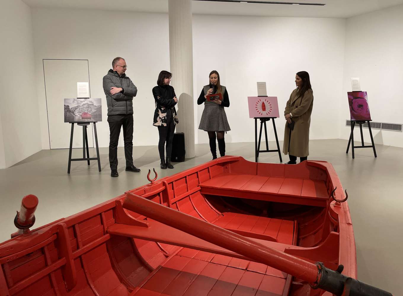 Indra Moroder, na artista de Urtijëi che sta a Londra, ova ntlëuta venciù l cuncors. Ma n à ulù ti dé valor a duta l’opres di 18 artisć y artistes che à fat pea. Nscila iel unit a s’l dé la mostra “The red boat”, na mostra che n à bele metù ora te de plu luesc dl Sudtirol y che ie śën da udëi a Urtijëi tla Cësa di Cungresc basite.