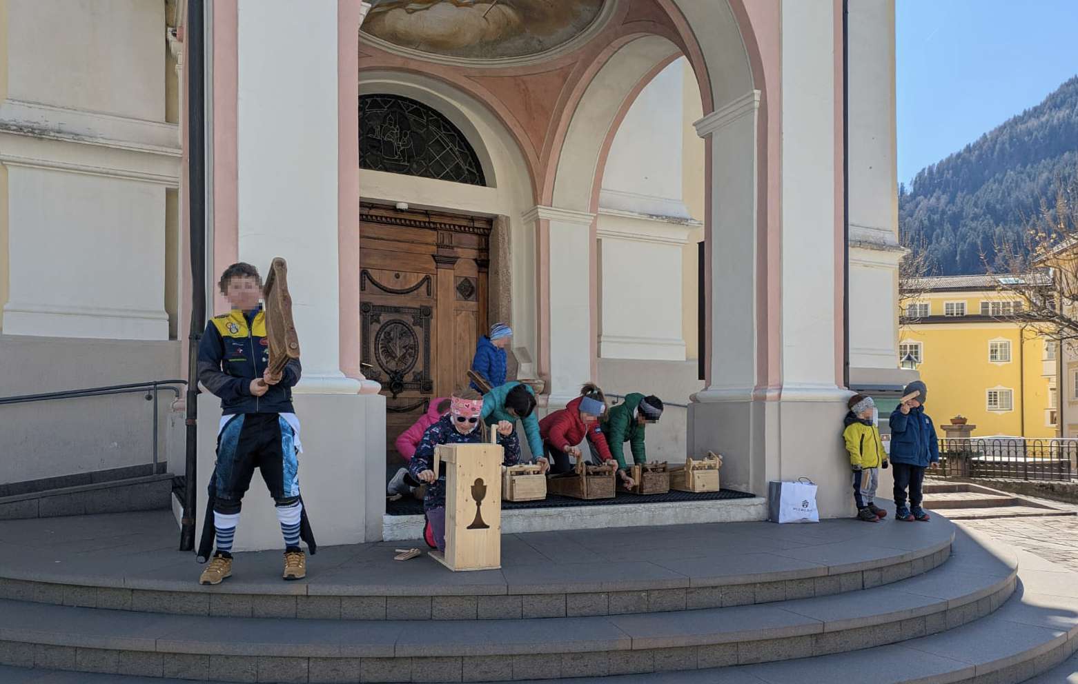 Do la funzion de Juebia Santa iel chiet. Tl luech ne n’àuden nia plu la ciampanes nchin Pasca. A Urtijëi iel la tradizion de suné la craces. I ministronc se anconta sun plaza de dlieja, i se concia su dan rëjes cun de majera y mëndra craces y scumëncia a fé na drëta tiotna. Chësc feji sibe dala dodesc, che nce dala trëi domesdì de ncuei vënderdi sant.