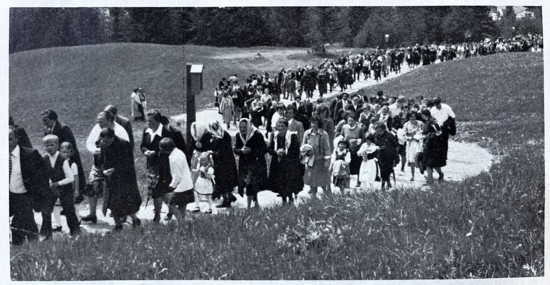 Te La Usc di Ladins dl 1976 dl 1. messé, él reporté la gran festa che se desfirâ dan da 50 agn a Oies. Ara se tratâ de n gran evënt, a chël che i redadus ti â dediché tröpa lerch. La Usc di Ladins scrí: »Cër 15.000 persones s’é abinades ai 30 de ma a San Linert, paisc nadé dl Beat P. Ujöp Frëinademetz«.